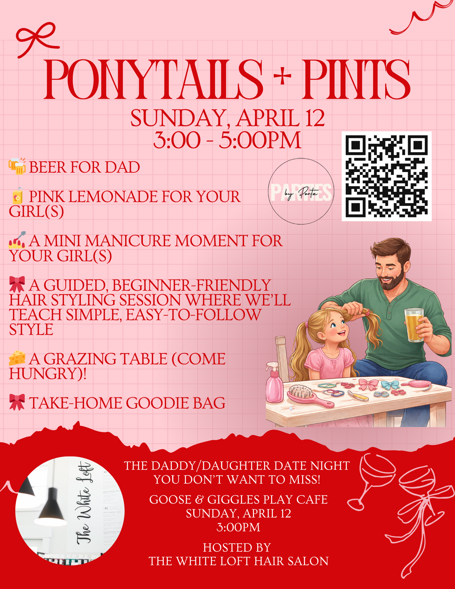 Ponytails + Pints - Daddy + Daughter Night at Goose & Giggles - April 12